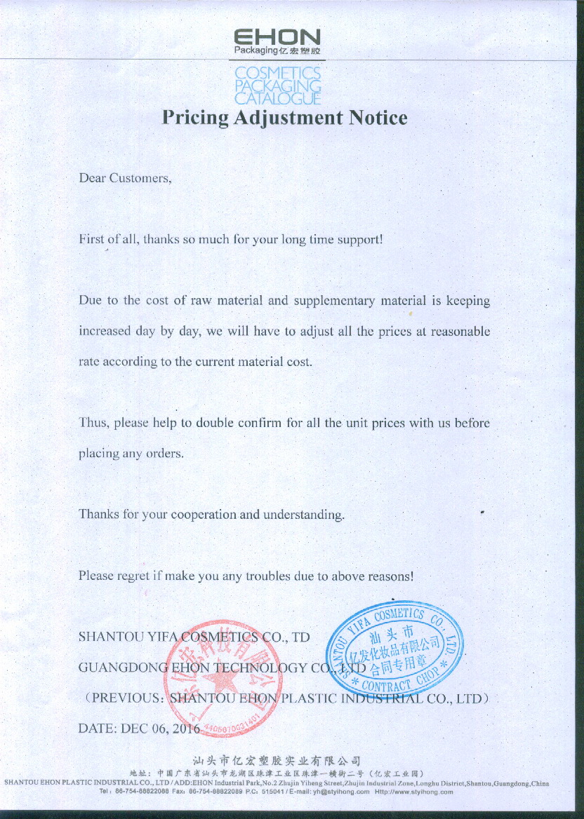 Due to the cost of raw material and supplementary material is keeping increased day by day, we will have to adjust all the prices