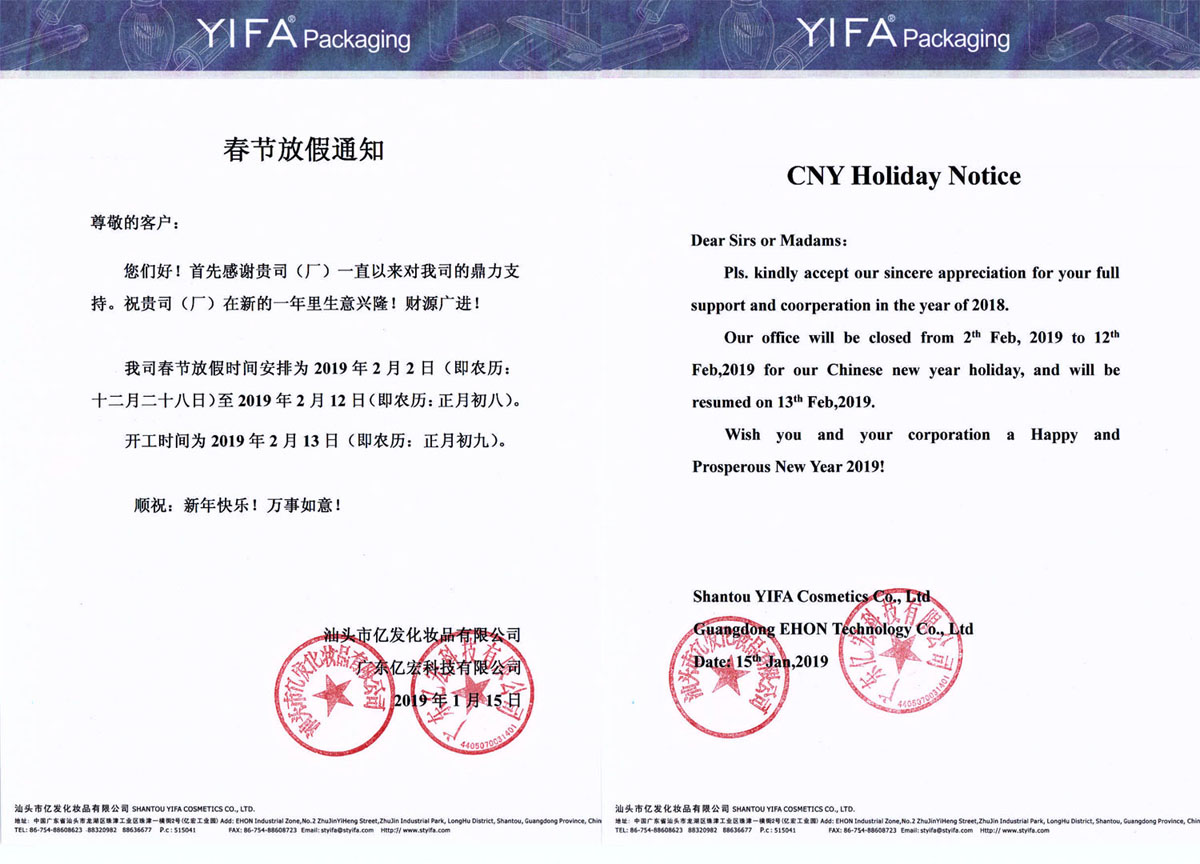 2019年春节放假通知